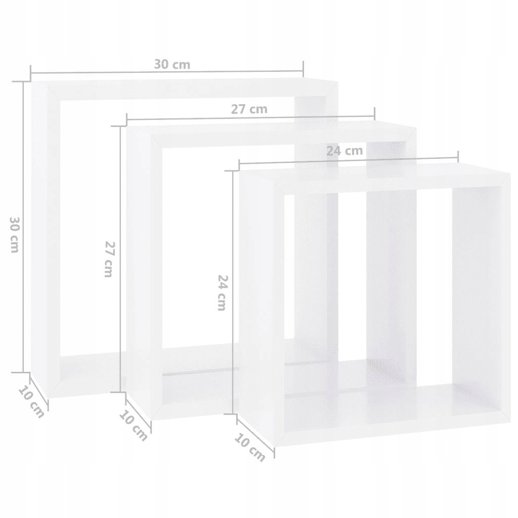 vidaXL Półki ścienne kostki, 3 szt., białe, MDF