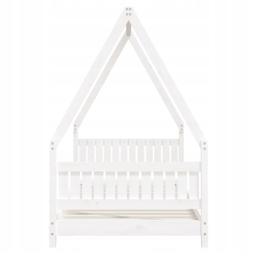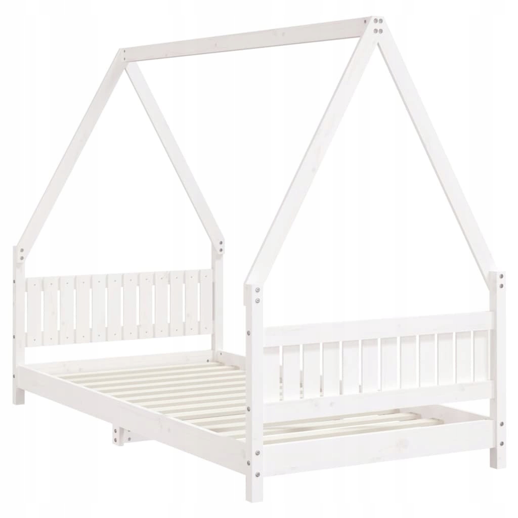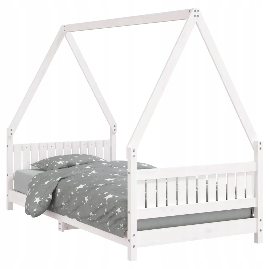 Stwórz pełną zabawy przestrzeń dla swojego malucha dzięki tej fantastycznej drewnianej ramie łóżka dla dzieci! Lite drewno sosnowe: ramę łóżka dziecięcego wykonano z litego drewna sosnowego. Lite drewno sosnowe to piękny, naturalny materiał. Ma ono prostą strukturę słojów, a sęki nadają mu wyjątkowy, rustykalny wygląd.Trwałe listwy: łóżko dla dzieci wykonano z drewnianych listw, które oferują podparcie, wentylację powietrza i stabilność konstrukcji.Konstrukcja łóżka - domku: rama tego łóżka dla dzieci ma elegancką konstrukcję w kształcie zadaszenia, na której można zawiesić zasłony, aby zapewnić dziecku prywatność.Przemyślana forma: wysokość pojedynczego łóżka dla dzieci została pomyślana tak, aby sięgała jak najniżej, co ułatwia dziecku wchodzenie i wychodzenie z łóżka. OSTRZEŻENIE. Nie umieszczaj łóżeczka dziecięcego w pobliżu źródeł ciepła, okien i innych mebli. OSTRZEŻENIE. Nie używaj łóżeczka dziecięcego, jeśli jakakolwiek część jest uszkodzona, podarta lub jej brakuje.