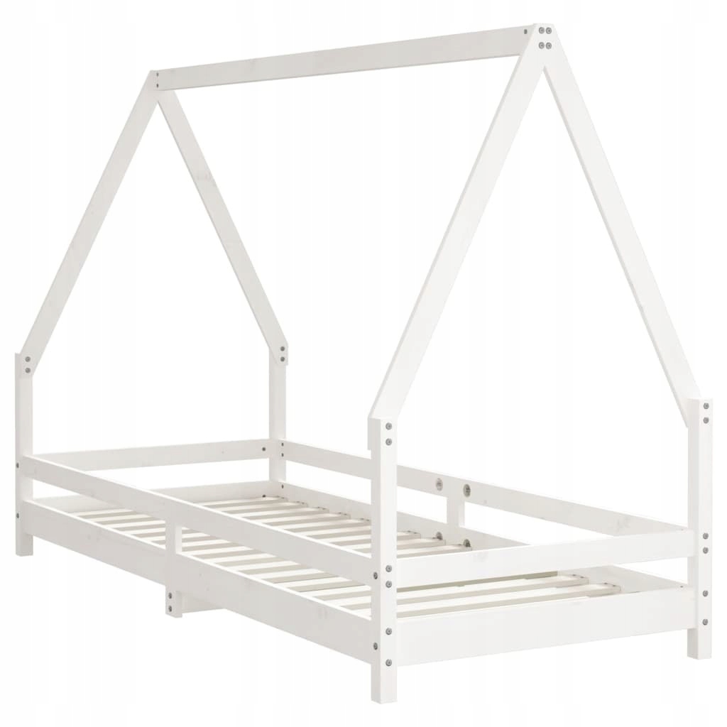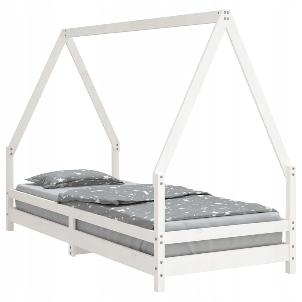 Stwórz pełną zabawy przestrzeń dla swojego malucha dzięki tej fantastycznej drewnianej ramie łóżka dla dzieci! Lite drewno sosnowe: ramę łóżka dziecięcego wykonano z litego drewna sosnowego. Lite drewno sosnowe to piękny, naturalny materiał. Ma ono prostą strukturę słojów, a sęki nadają mu wyjątkowy, rustykalny wygląd.Trwałe listwy: łóżko dla dzieci wykonano z drewnianych listw, które oferują podparcie, wentylację powietrza i stabilność konstrukcji.Konstrukcja łóżka - domku: rama tego łóżka dla dzieci ma elegancką konstrukcję w kształcie zadaszenia, na której można zawiesić zasłony, aby zapewnić dziecku prywatność.Przemyślana forma: wysokość pojedynczego łóżka dla dzieci została pomyślana tak, aby sięgała jak najniżej, co ułatwia dziecku wchodzenie i wychodzenie z łóżka. OSTRZEŻENIE. Nie umieszczaj łóżeczka dziecięcego w pobliżu źródeł ciepła, okien i innych mebli. OSTRZEŻENIE. Nie używaj łóżeczka dziecięcego, jeśli jakakolwiek część jest uszkodzona, podarta lub jej brakuje.