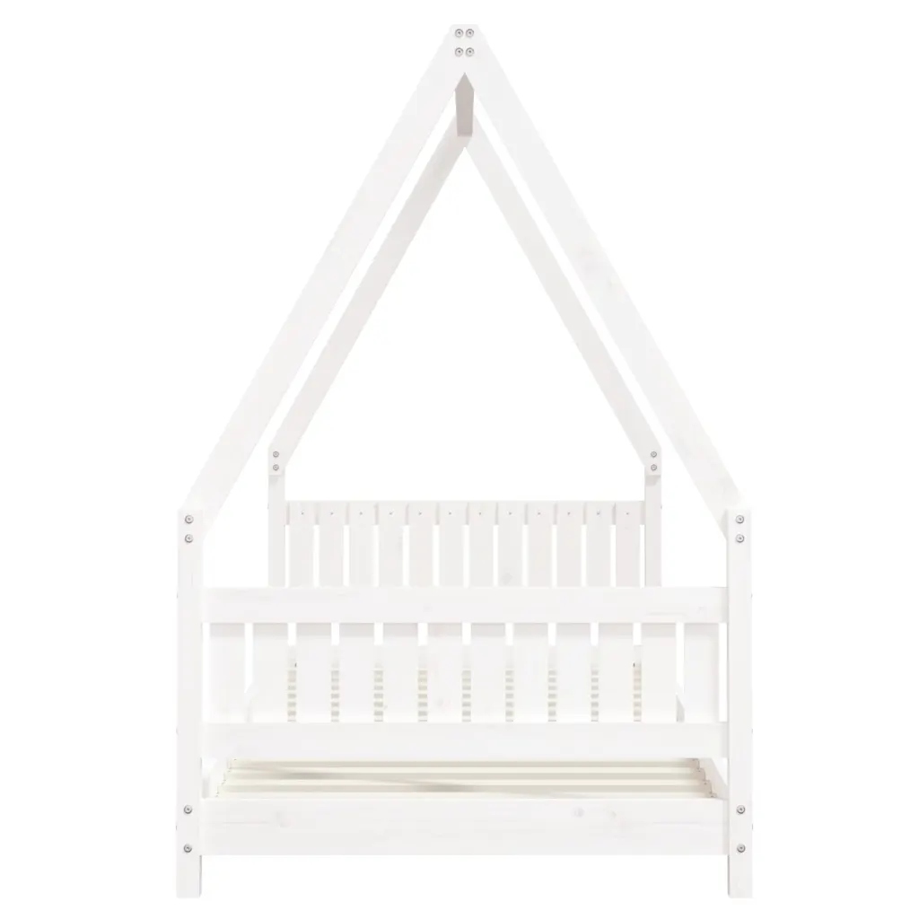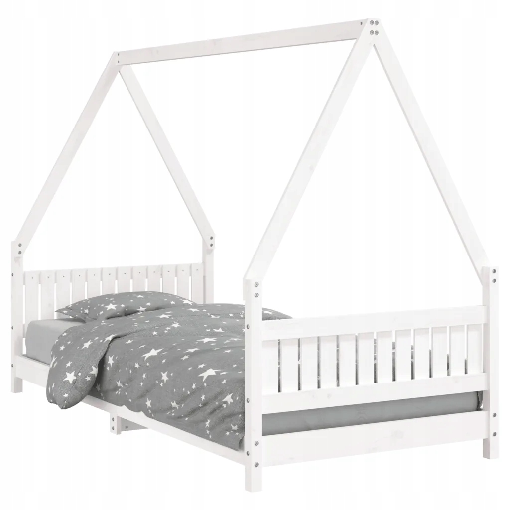 Stwórz pełną zabawy przestrzeń dla swojego malucha dzięki tej fantastycznej drewnianej ramie łóżka dla dzieci! Lite drewno sosnowe: ramę łóżka dziecięcego wykonano z litego drewna sosnowego. Lite drewno sosnowe to piękny, naturalny materiał. Ma ono prostą strukturę słojów, a sęki nadają mu wyjątkowy, rustykalny wygląd.Trwałe listwy: łóżko dla dzieci wykonano z drewnianych listw, które oferują podparcie, wentylację powietrza i stabilność konstrukcji.Konstrukcja łóżka - domku: rama tego łóżka dla dzieci ma elegancką konstrukcję w kształcie zadaszenia, na której można zawiesić zasłony, aby zapewnić dziecku prywatność.Przemyślana forma: wysokość pojedynczego łóżka dla dzieci została pomyślana tak, aby sięgała jak najniżej, co ułatwia dziecku wchodzenie i wychodzenie z łóżka. OSTRZEŻENIE. Nie umieszczaj łóżeczka dziecięcego w pobliżu źródeł ciepła, okien i innych mebli. OSTRZEŻENIE. Nie używaj łóżeczka dziecięcego, jeśli jakakolwiek część jest uszkodzona, podarta lub jej brakuje.