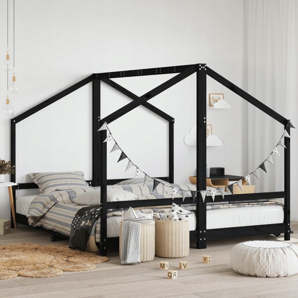 vidaXL Rama łóżka dziecięcego, czarna, 2x(90x200) cm, drewno sosnowe