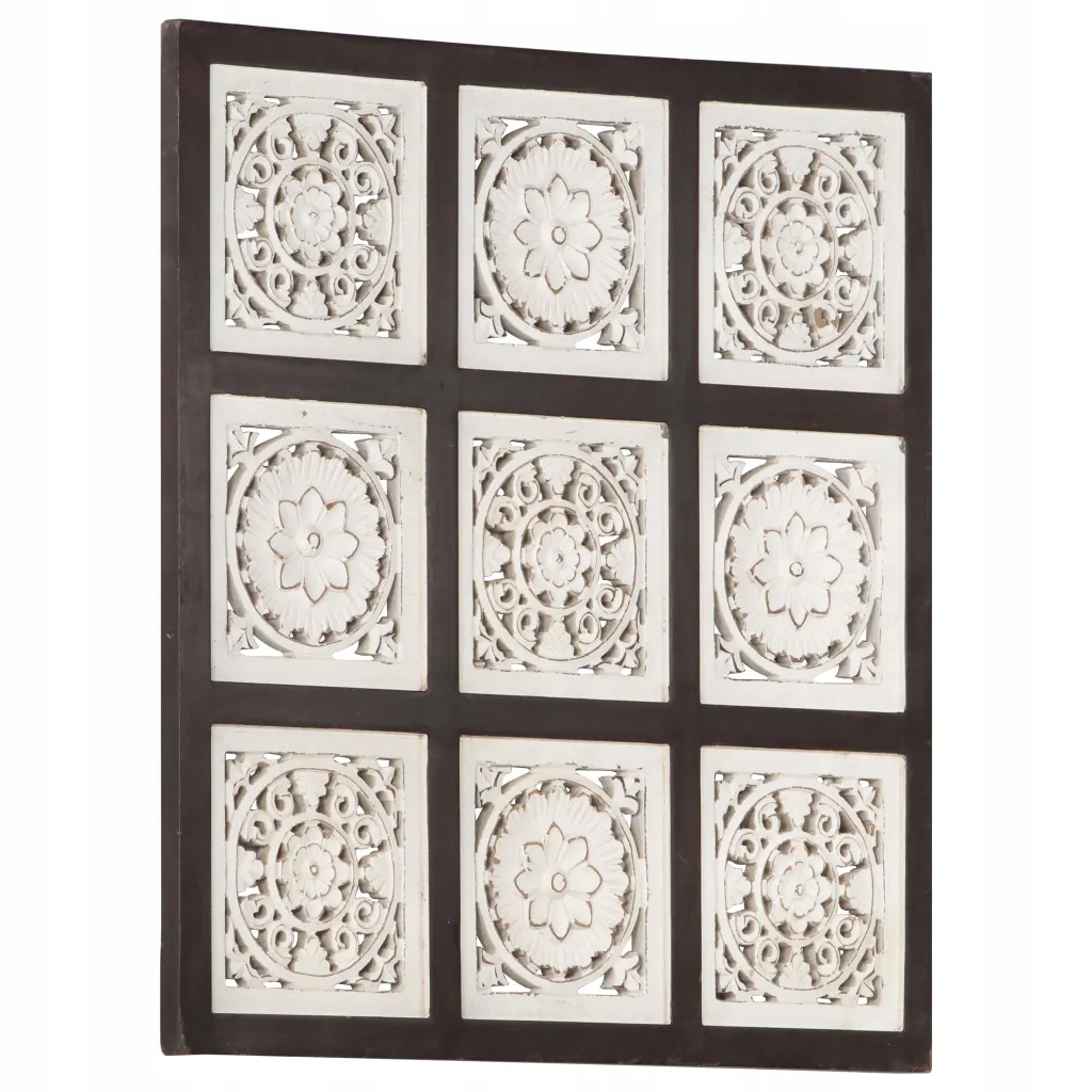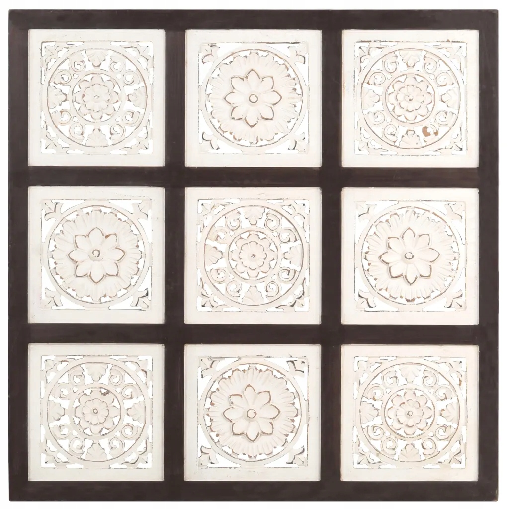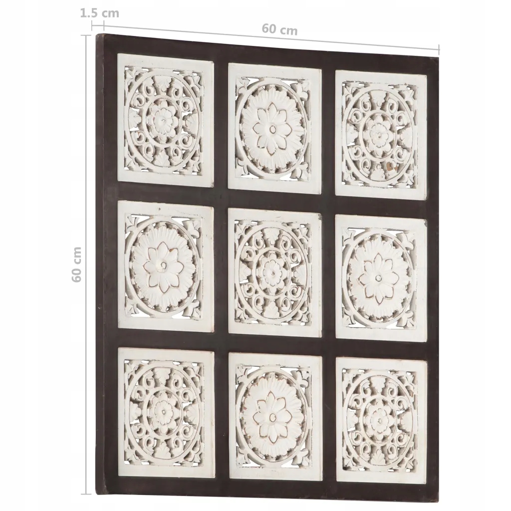 vidaXL Ręcznie rzeźbiony panel ścienny, MDF, 60x60x1,5 cm, brąz i biel