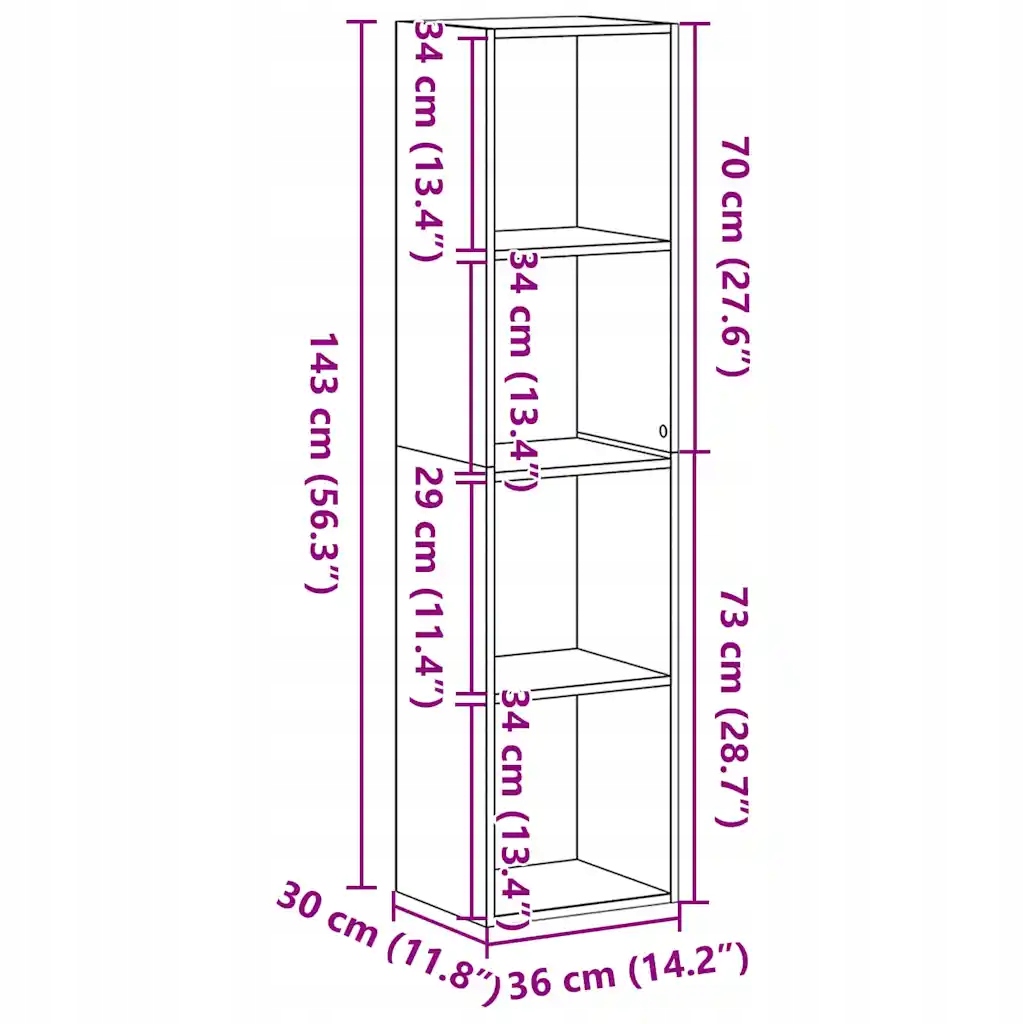 Ten regał na książki to idealne rozwiązanie do uporządkowania książek, a jednocześnie stylowy i funkcjonalny dodatek do wystroju domu. Stabilny i trwały materiał: materiał drewnopochodny jest wytrzymały i stabilny oraz charakteryzuje się gładką powierzchnią, odporną na wilgoć, wypaczanie się i rozwarstwianie, dzięki czemu stanowi znakomity wybór do różnych projektów.Uniwersalne zastosowanie: biblioteczka będzie idealnym miejscem na Twoją kolekcję książek. Może posłużyć również jako regał ekspozycyjny na przedmioty kolekcjonerskie, zdjęcia, nagrody, rośliny doniczkowe itp.4-poziomowy regał: biblioteczka ma 4 poziomy, zapewniając mnóstwo miejsca do wyeksponowania książek, zdjęć rodzinnych, roślin doniczkowych oraz innych rzeczy, dzięki czemu Twoja przestrzeń będzie bardziej uporządkowana i elegancka.Swoboda w aranżacji: regał można postawić na podłodze zarówno na węższym, jak i na dłuższym boku, co pozwala na różnorodne opcje aranżacji pomieszczenia.Łatwość utrzymania: dzięki gładkiej powierzchni ten niewymagający pielęgnacji mebel można łatwo wyczyścić wilgotną ściereczką. Ostrzeżenie:Aby zapobiec przewróceniu się produktu, należy przymocować go do ściany za pomocą dołączonych elementów.