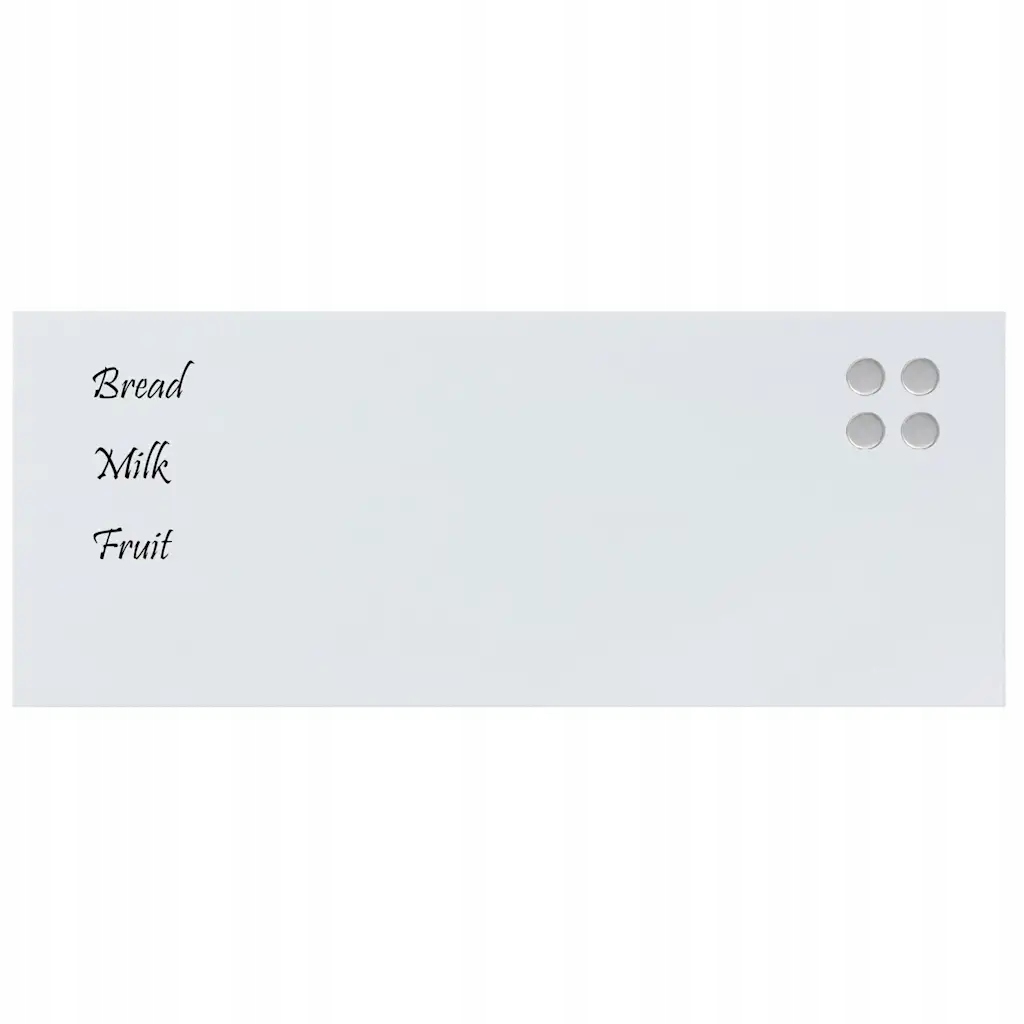 Specjalne ogłoszenia lub codzienne wiadomości będą wyglądać zwięźle i przejrzyście dzięki tej ściennej tablicy magnetycznej. Płynne pisanie: Tablica suchościeralna zapewnia płynne pisanie, a pismo odręczne jest łatwe do zmycia.Trwałe szkło hartowane: Magnetyczna tablica ogłoszeń wykonana jest z hartowanego szkła bezpiecznego, dzięki czemu jest trwała i posłuży przez długi czas.Wielofunkcyjna tablica do pisania: Używaj ściennej tablicy magnetycznej jako pustego płótna do zapisywania codziennych planów i list rzeczy do zrobienia lub jako wspólnego miejsca do przechowywania kreatywnych myśli i pomysłów.Wygodny montaż: W zestawie znajdują się niezbędne materiały do montażu na ścianie, dzięki czemu magnetyczną tablicę można łatwo przymocować do dowolnej ściany w domu, biurze i szkole. Warto wiedzieć:Śruby i kołki montażowe nie są dołączone.Aby Aby zapewnić właściwe działanie magnesów, należy używać odpowiednich magnesów dostarczonych w zestawie.
