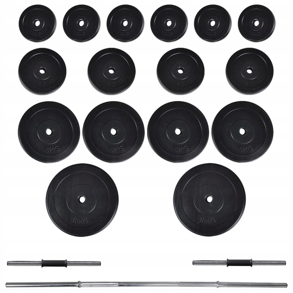 - 2 x talerz 10 kg: 32 x 5,5 cm (śr. x gr.)