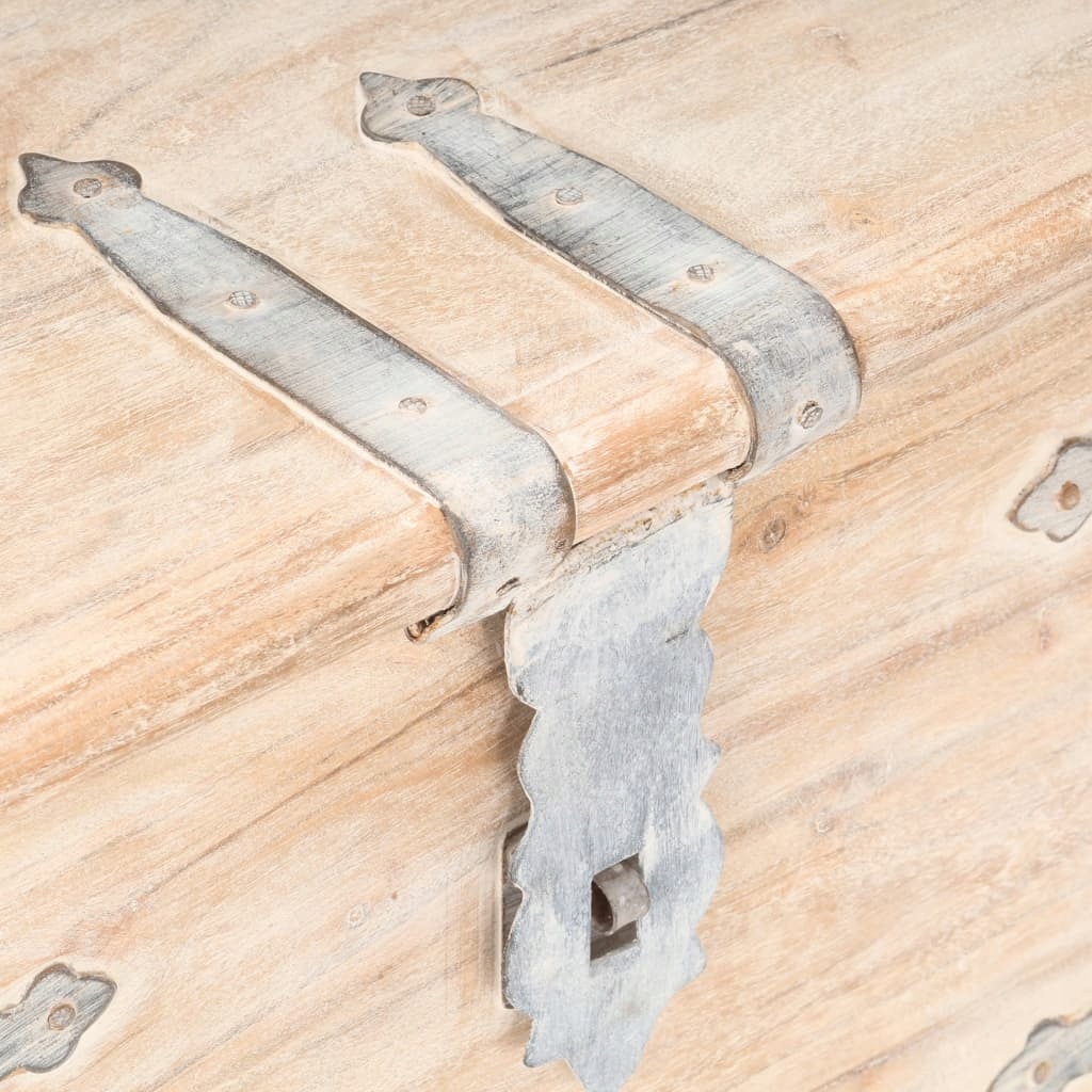 Drewniana skrzynia wniesie prosty wygląd do wystroju Twojego domu i zapewni dużo miejsca do przechowywania przedmiotów. Skrzynię wykonano z litego drewna akacjowego, dzięki czemu jest stabilna i wytrzymała. Ma zamknięcie z przodu oraz dwa uchwyty do podnoszenia po bokach. Ten schowek ze stabilnym, płaskim wierzchem może posłużyć również jako stolik nocny. Kunszt wykonania i piękne słoje drewna sprawiają, że każdy mebel jest wyjątkowy i nieco inny od pozostałych. Ważna uwaga: kolory i usłojenie poszczególnych egzemplarzy mogą się różnić, dzięki czemu każdy jest unikatowy; wysyłka odbywa się losowo.