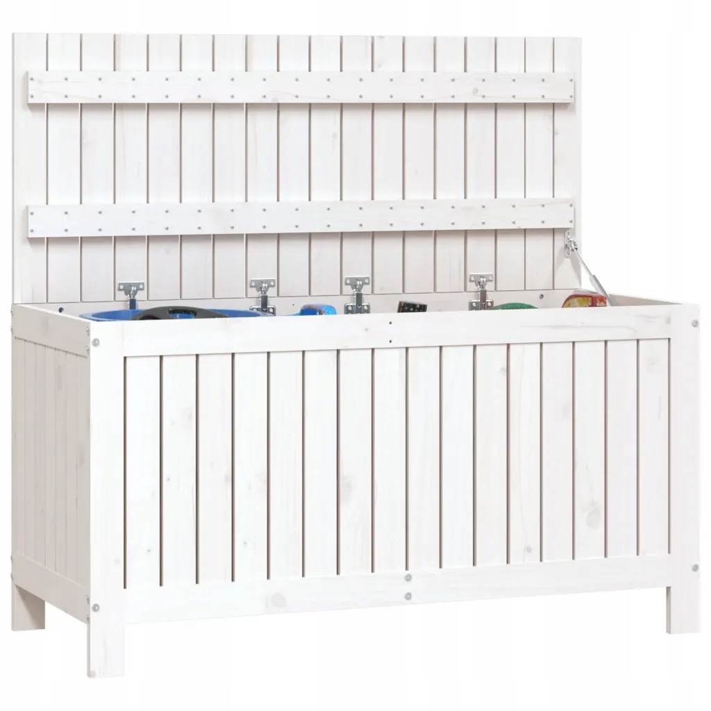 Skrzynia ogrodowa jest idealnym rozwiązaniem do przechowywania rzeczy i stanowi wspaniały dodatek dekoracyjny do Twojej przestrzeni życiowej. Lite drewno sosnowe: lite drewno to piękny, naturalny materiał. Drewno sosnowe ma prostą strukturę słojów, a sęki nadają mu wyjątkowy, rustykalny wygląd.Spora przestrzeń do przechowywania: drewniana skrzynia oferuje dużo miejsca do trzymania narzędzi ogrodowych, sprzętu sportowego, poduszek, zabawek i innych rzeczy.Pokrywa z podnośnikiem gazowym: możesz łatwo otwierać i zamykać pokrywę za pomocą podnośnika gazowego.Świetna wentylacja: pojemnik wykonano z listew, co gwarantuje optymalną wentylację. Uwaga:Każdy produkt jest dostarczany wraz z instrukcją montażu dla ułatwienia tej czynności.Aby przedłużyć żywotność mebli ogrodowych, zalecamy zabezpieczenie ich wodoodpornym pokrowcem.