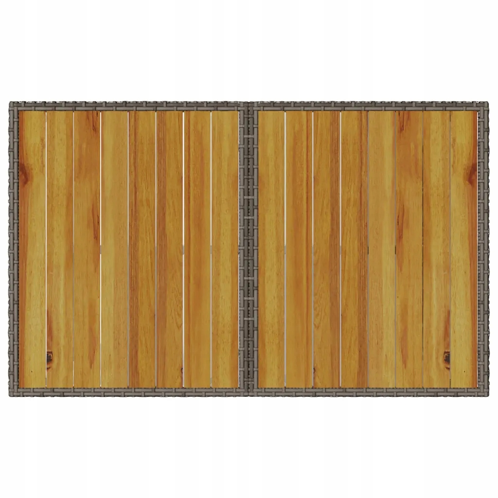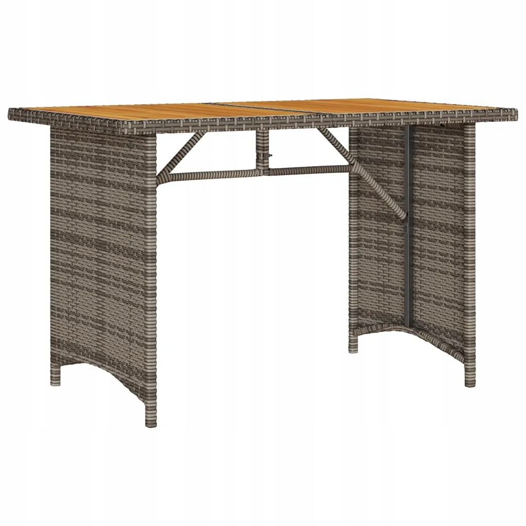 Ten stół ogrodowy z drewnianym blatem, o prostych i gładkich liniach, jest doskonałym wyborem do Twojego ogrodu, tarasu i innej przestrzeni na zewnątrz. Wytrzymały materiał: rattan PE, znany również jako polirattan, to trwałe i łatwe w utrzymaniu tworzywo sztuczne, które wyglądem przypomina naturalny rattan. Jest lekki, łatwy w czyszczeniu i powszechnie stosowany do wyrobu produktów przeznaczonych do użytku na zewnątrz ze względu na jego trwałość i odporność na czynniki atmosferyczne.Drewniany blat: blat stolika ogrodowego wykonano z mocnego i trwałego drewna akacjowego, dzięki czemu można go łatwo wyczyścić przy pomocy wilgotnej ściereczki. Stolik ten wniesie odrobinę elegancji do Twojej przestrzeni przydomowej.Solidna i stabilna rama: malowana proszkowo rama ze stali gwarantuje wytrzymałość i stabilność mebla w codziennym użytkowaniu na zewnątrz. Warto wiedzieć:Aby utrzymać meble ogrodowe w dobrej kondycji, zalecamy zabezpieczenie ich wodoszczelnym pokrowcem. Maksymalnie 110 kg na siedzisko. Należy mieć świadomość ryzyka związanego z używaniem otwartego ognia i innych źródeł ciepła w pobliżu produktu.