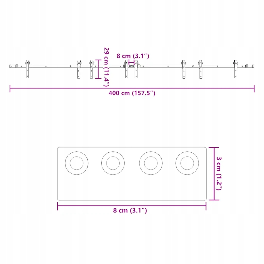 - Długość całkowita prowadnicy: 400 cm