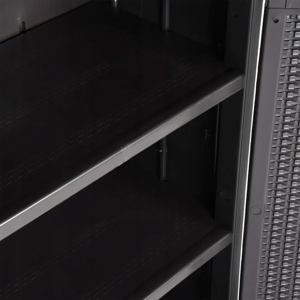 Szafka do przechowywania o praktycznym designie będzie przyciągać wzrok w wystroju Twojego domu. Wykonana w 100% z PP (polipropylenu) szafka jest trwała i łatwa w czyszczeniu. Dzięki 4 półkom zapewnia dużo miejsca do uporządkowania i przechowywania niezbędnych przedmiotów, takich jak chusteczki, detergenty do prania, szczotki i inne. Ta uniwersalna szafka na taras może spełnić Twoje różne potrzeby. Ostrzeżenie: aby zapobiec przewróceniu się produktu, należy przymocować go do ściany za pomocą odpowiednich akcesoriów (brak w zestawie).