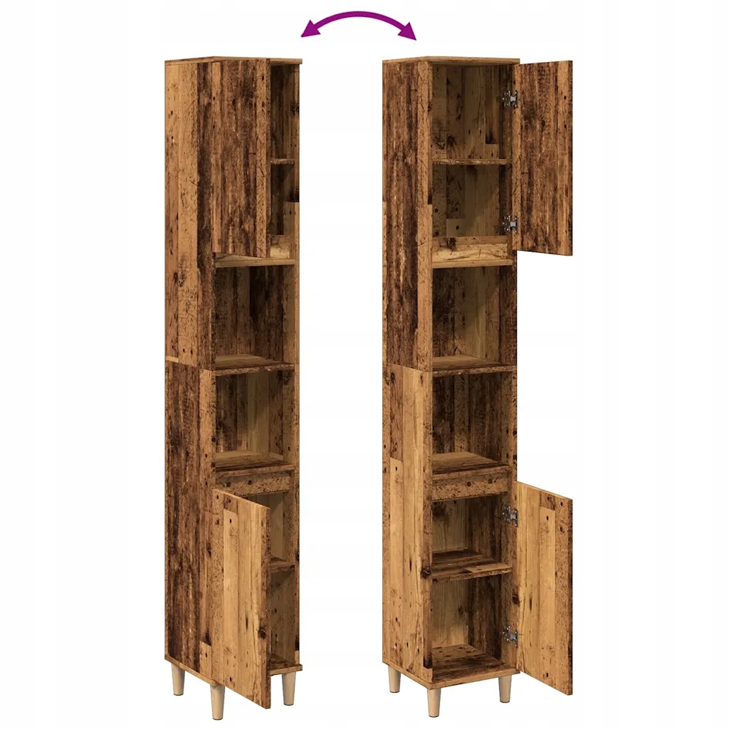vidaXL Szafka łazienkowa, stare drewno, 30x30x190 cm