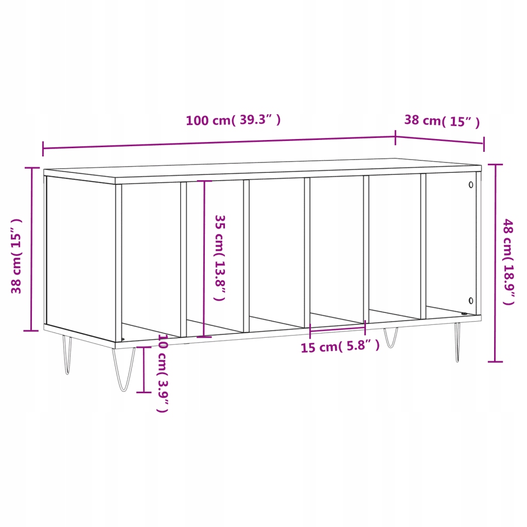 Uporządkuj i wyeksponuj swoje płyty winylowe za sprawą tej praktycznej, klasycznej szafki na płyty. Trwały materiał: materiał drewnopochodny charakteryzuje się wyjątkową jakością i gładką powierzchnią, a także wytrzymałością, stabilnością i odpornością na wilgoć.Dużo miejsca do przechowywania: przestronna szafka oferuje mnóstwo przestrzeni na nagrania i pozwala uporządkować swoją kolekcję płyt.Mocny blat: solidny blat szafki na płyty winylowe jest idealny do postawienia na nim odtwarzacza do płyt lub innych urządzeń elektronicznych.Żelazne nóżki: nóżki z żelaza dodają wnętrzu industrialnego stylu, zapewniając jednocześnie stabilność mebla.