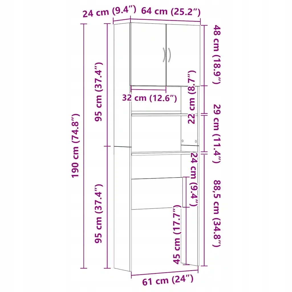 vidaXL Szafka pod pralkę Sonoma Szara 64x24x190 cm Drewno klejone