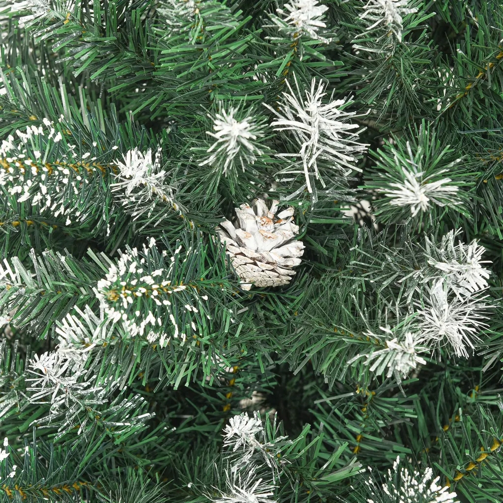 Wnieś do swojego domu niepowtarzalną radosną i świąteczną atmosferę oraz bożonarodzeniowy klimat dzięki tej klasycznej choince! Konstrukcja na zawiasach: to luksusowe drzewko ma konstrukcję na zawiasach, więc gałęzie automatycznie ustawią się pod odpowiednim kątem. Ułatwia to ustawienie choinki w idealnym kształcie, jednocześnie oszczędzając Twój czas.Solidny stojak: sztuczne drzewko posiada solidny stalowy stojak, który zapewnia mu optymalną stabilność.Końcówki z PVC: dekoracja świąteczna ma szpiczaste i zwykłe końcówki, zapewniające realistyczny i piękny wygląd.Piękna dekoracja: choinka ma na sobie szyszki, które nadają jej piękny naturalny efekt. Jest również ozdobiona sztucznym białym śniegiem, aby uzyskać atrakcyjny, śnieżny wygląd.