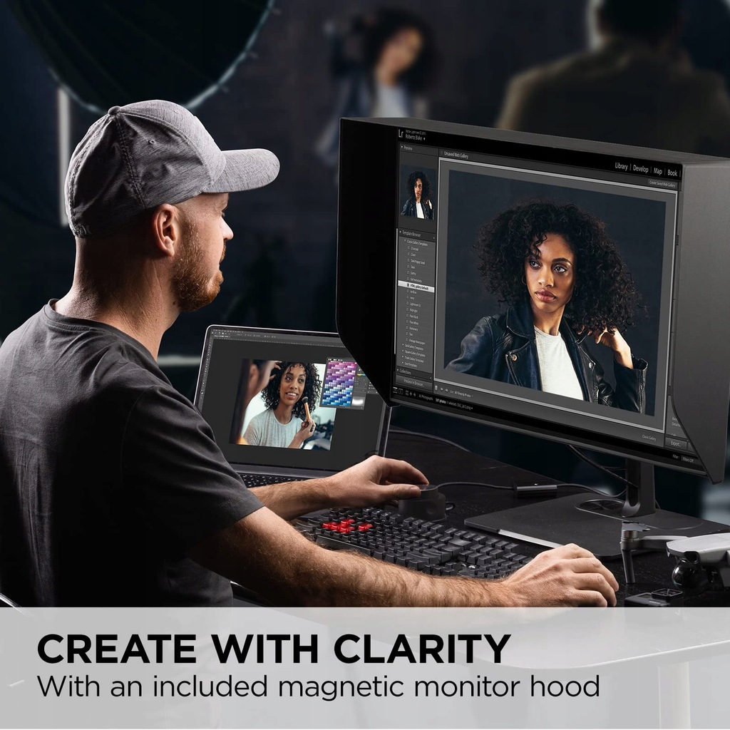 Kompatybilny z Apple: MAC Ready z portem USB-C o mocy 90 W i 98-procentową gamą kolorów DCI-P3 International Digital Film Standard. Profesjonalne kolory: HDR10 z Nano IPS Natychmiastowa regulacja kolorów: Nasze ekskluzywne koło ColorPro umożliwia kalibrację i regulację kolorów za pomocą oprogramowania Adobe i ekranów za naciśnięciem jednego przycisku. Przenośna ciemnia: Składana osłona przeciwodblaskowa Nagradzana konstrukcja: Wielokrotna zdobywczyni nagród za minimalistyczny design, łatwość obsługi i zaawansowane funkcje.