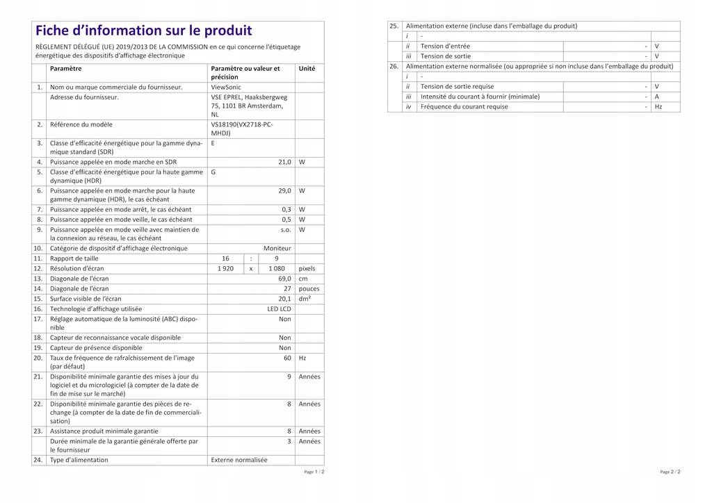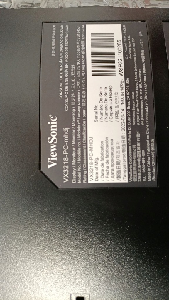 Zakres dostawy: monitor ViewSonic VX3219-PC-MHD, DP, kabel zasilający, skrócona instrukcja obsługi