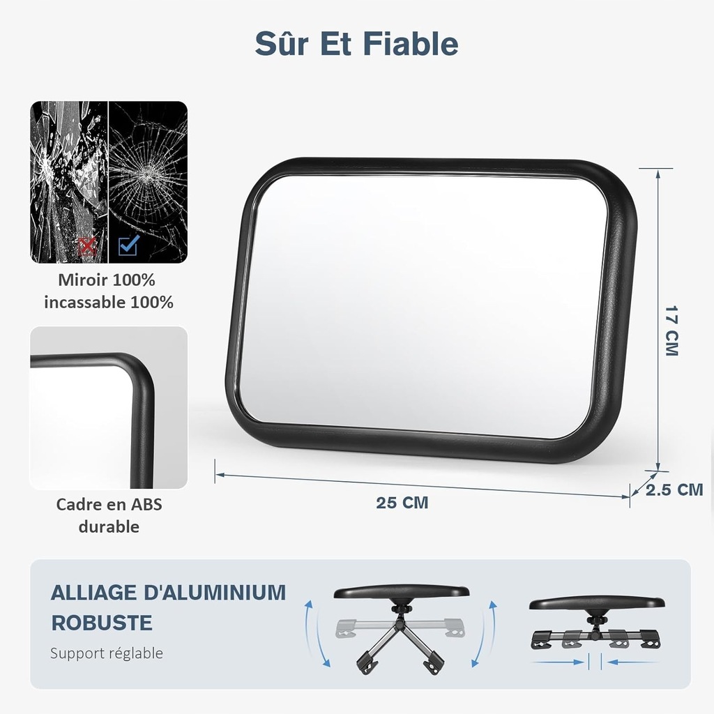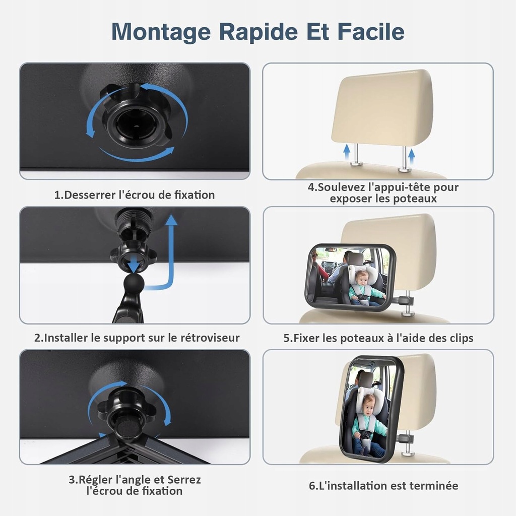 Łatwy montaż: metalowa klamra lusterka dziecięcego jest nie tylko stabilna i bezpieczna, ale również łatwa w montażu. Lustro można łatwo zamontować, otwierając je i naciskając. Cały proces trwa mniej niż 3 sekundy, aby zapewnić trwałą ochronę.