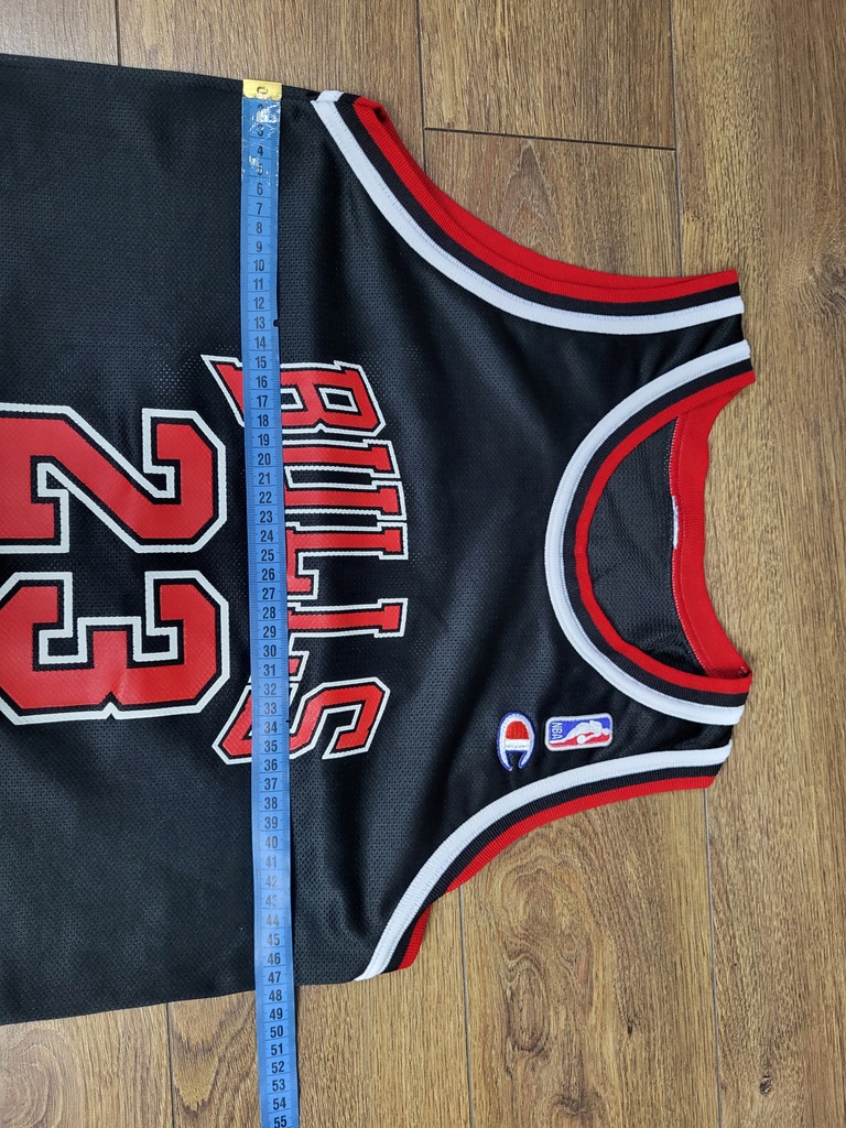 Vintage Champion Chicago Bulls NBA Jordan 14-16 lat, stan praktycznie idealny, obcięta górna metka, wymiary rzeczywiste widoczne na zdjęciach.