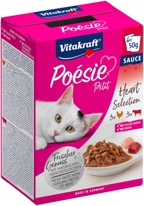 Mała porcja-wielka przyjemność! Wyselekcjonowane składniki, mięso kurczaka i wołowiny z pewnością przypadną do gustu każdemu kotu.