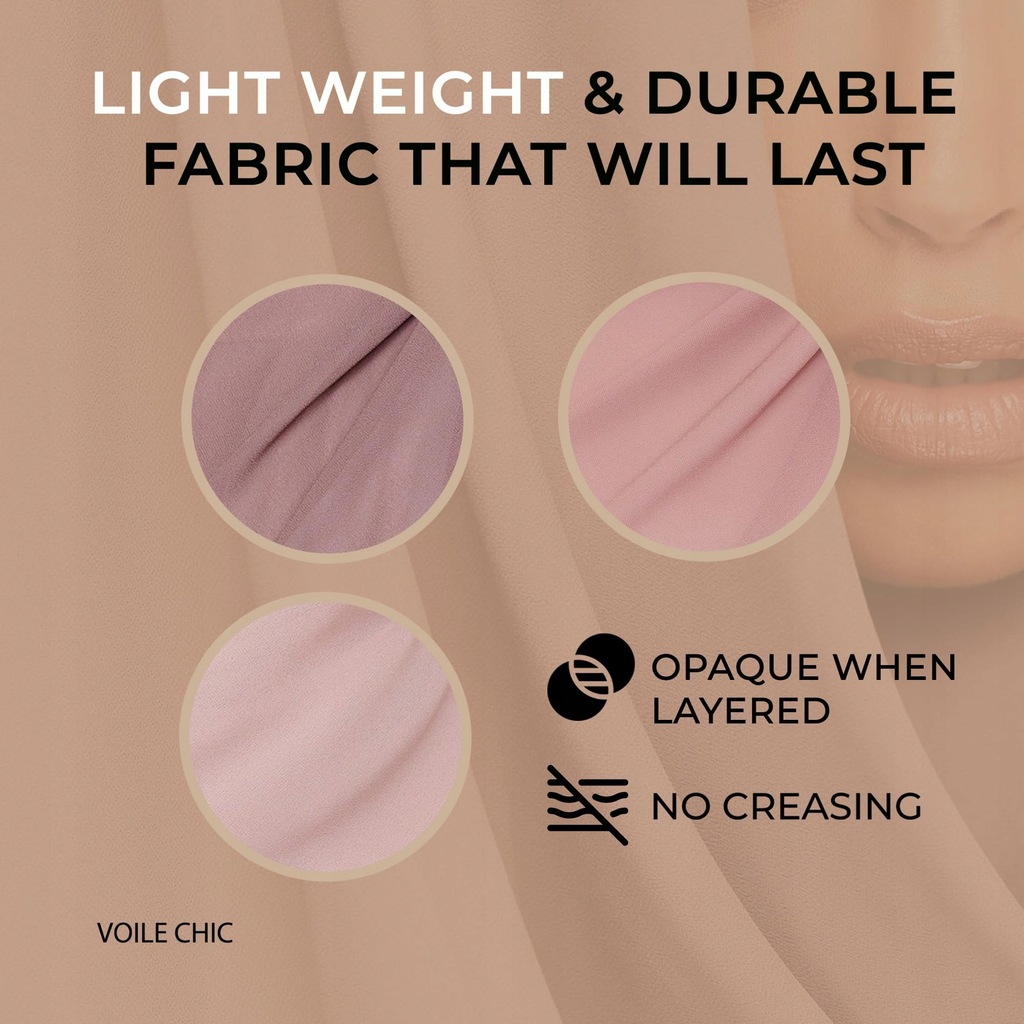 - Łatwy w użyciu: otrzymasz 3 sztuki szyfonowych hidżabów w jednym opakowaniu, w tym 3 różne kolory. W przeciwieństwie do innych szyfonowych hidżabów, nasze szyfonowe hidżaby Voile Chic dla kobiet mają lekko teksturowany i rozciągliwy materiał, dzięki czemu pozostają na swoim miejscu przez cały dzień bez poślizgu.
