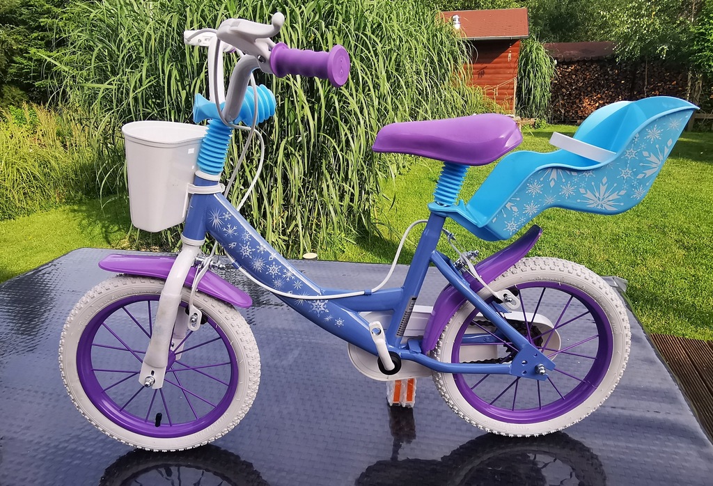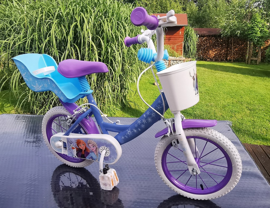 14-calowy rower dziecięcy Disney Frozen został specjalnie zaprojektowany, aby towarzyszyć dzieciom w wieku od 3 do 5 lat w świecie jednośladów. Rower 14 cali posiada boczne kółka dzięki temu jest stabilny i bezpieczny.