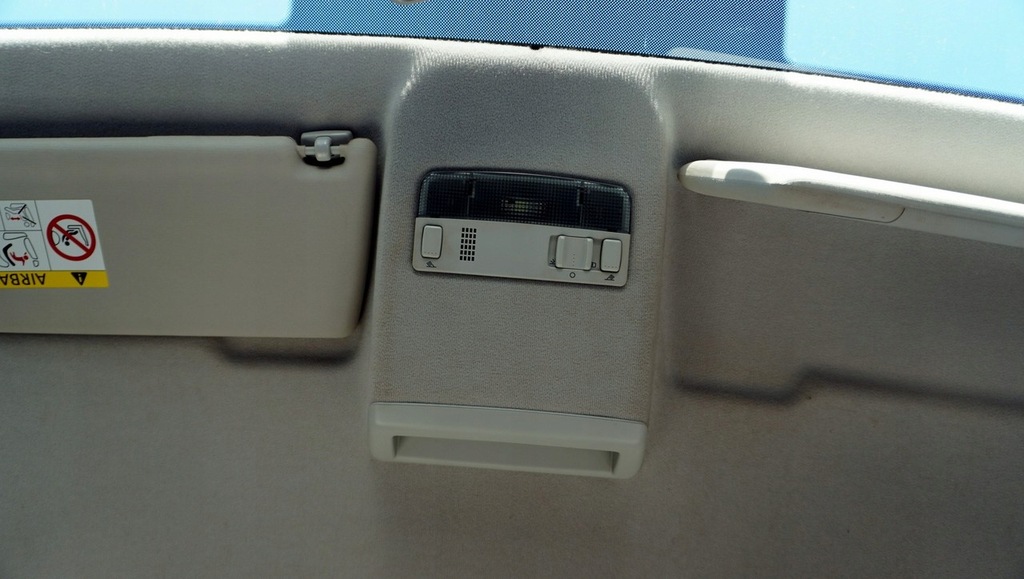 5XR osłony przeciwsłoneczne z lusterkiem, etykietą Airbag na osłonie po stronie przedniego pasażera