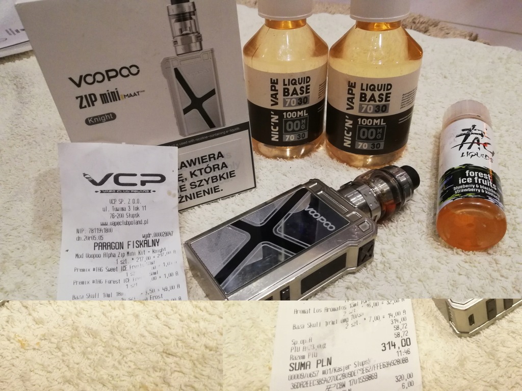 Voopoo Alpha Zip Mini – Kit – Zestaw od VOOPOO, został wykonany z metalu z dodatkiem ozdobnych elementów. Urządzenie zostało wyposażone w akumulator o pojemności 4400mAh. Zakres mocy urządzenia wynosi od 5 do 120W. Ładowany jest za pomocą portu microUSB. Mod został wyposażony w wyświetlacz OLED, posiada tryb kontroli temperatury. Atomizer został wyposażony w dolny regulowany przepływ powietrza. Pojemność zbiornika wynosi 2ml