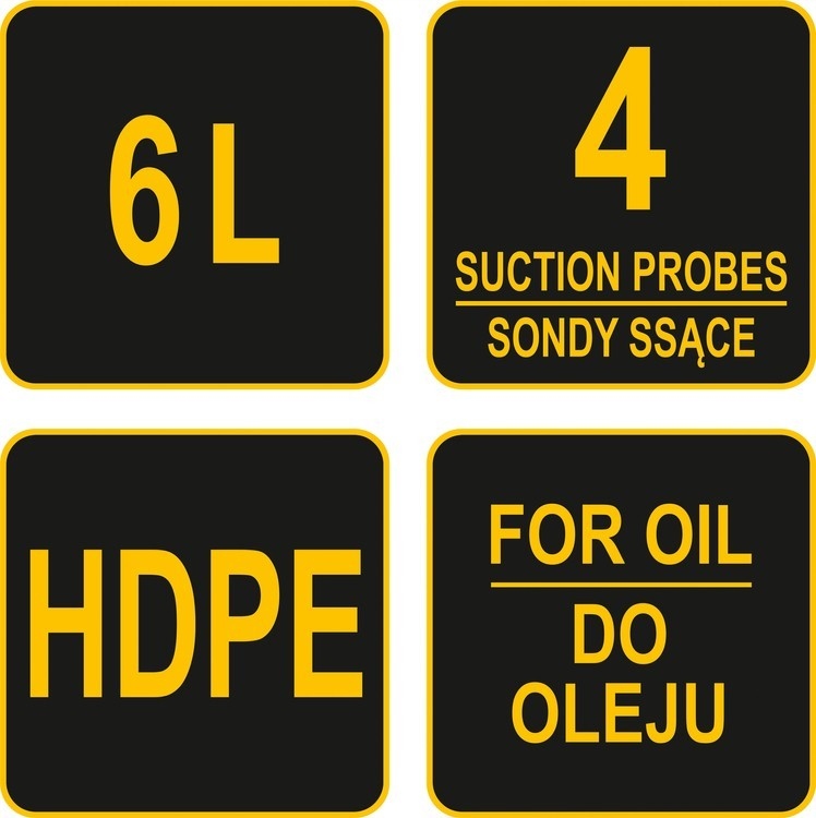Pompa do wymiany oleju i płynów o pojemności 6 l. Służy do wymiany, wysysania olejów oraz innych płynów. Pozwala w czysty sposób wypompować olej lub wodę z silników lub innych maszyn przez wypompowanie przez wlew oleju lub przez wejście bagnetu. W zestawie 4 cienkie przewody elastyczne.