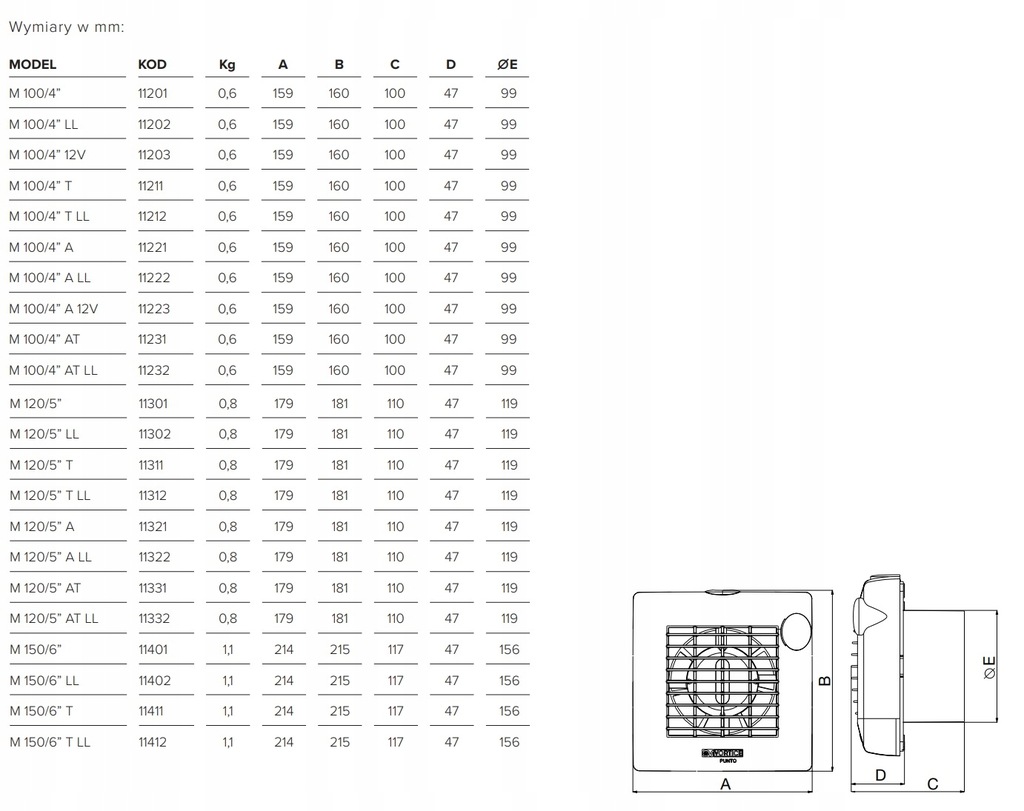 - Opis produktu: PUNTO ASPIRATORE MURO VORTICE M 100/4' Za pomocą zaworów modo intermittente o continuo piccoli o medi locali domestici o commerciali. Silniki poli schermati, w wersji brązowej o cuscinetti, dotato di termofusibile. Portata d'aria elevata e basso livello sonoro e consumo energetico grazie a ventola e portamotore a profil alarmowy. Portamotore e griglia realizzati z tworzywa ABS trattato anti-UV. Disponibili con tre misure di scarico: Ø 100, 120 e 150 mm. Aby nabyć nasze produkty, należy wystawić fakturę, prosimy o podanie szczegółów kodu podatkowego i/lub podatku VAT.