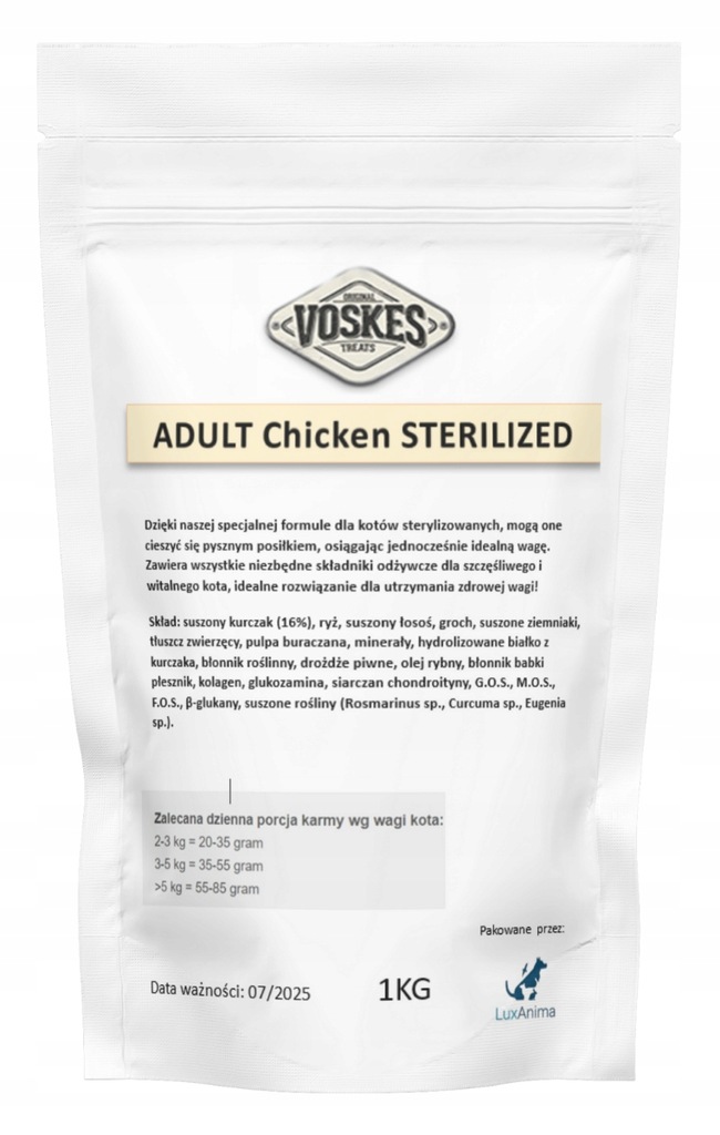 Karmę Voskes należy podawać zawsze w suchej postaci, ale zawsze należy pamiętać o zapewnieniu kotu świeżej wody pitnej. Karmę przechowywać w suchym i chłodnym miejscu .