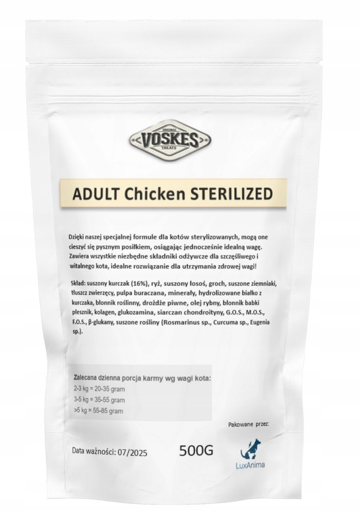 Karmę Voskes należy podawać zawsze w suchej postaci, ale zawsze należy pamiętać o zapewnieniu kotu świeżej wody pitnej. Karmę przechowywać w suchym i chłodnym miejscu .