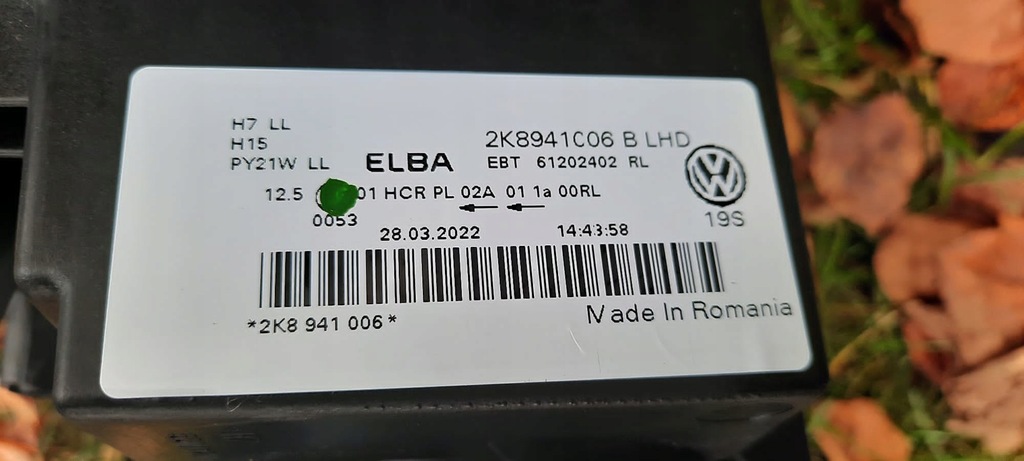 VW CADDY 2021 2022 ZWYKŁE LAMPY KOMPLET !! 2K8 (12756696651)