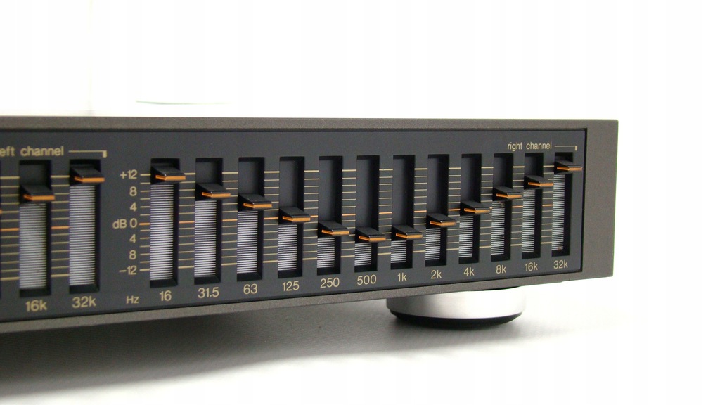 Model dla wymagających słuchaczy - posiada bardzo szeroki zakres korekcji, regulacja aż 12 pasm częstotliwości już od 16Hz do 32kHz na każdy kanał osobno. Tak szeroki zakres korekcji stawia ten korektor na czele najlepszych, o największych możliwościach dostosowania dźwięku do własnych preferencji odsłuchowych wśród korektorów graficznych.