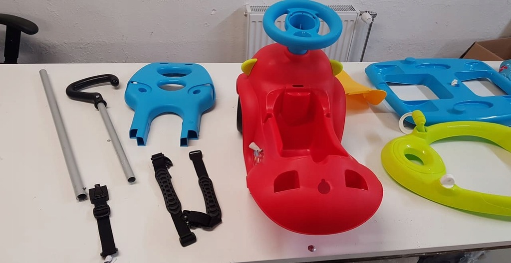 Jeździk spełnia 4 funkcje: bujak, jeździk z ramą i rączką dla rodzica, pchacz oraz samodzielny jeździk jeździk wyposażony został w wygodne oparcie, ramę z pokrowcem i pasami bezpieczeństwa, kierownicę z 3 melodiami oraz uchwyt do prowadzenia dla rodzica zabawka wymaga użycia 3 baterii LR44 / AG13 (w zestawie) wymiary opakowania: 62 x 40 x 32,5 cm wymiary jeździka: 61 cm długości x 44 cm szerokości x 55 cm wysokości (z oparciem)