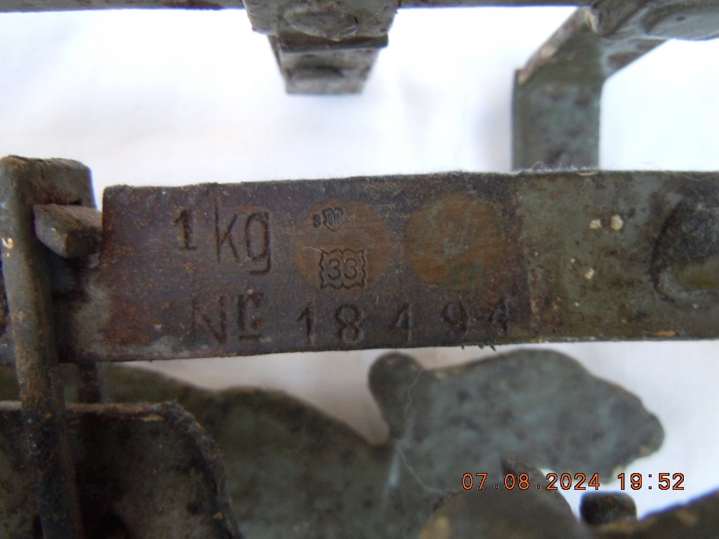 mam do sprzedania oryginalną unikatową przedwojenną wagę szalkową 1kg z firmy HOŁUBICZKO PRZEMYŚL. waga jest stara, posiada odbiory z 1933 roku . Kondycja jak na zdjęciach . chyba część lakieru (jeśli nie cały) jest oryginalny . cena zawiera cło dla allegro, może być taniej. Gorąco polecam. Stan jak na zdjęciach. bardzo proszę O DOKŁADNE OBERJRZENIE ZDJĘĆ KTÓRE PRZEDSTAWIAJĄ STAN WAGI. ZAPRASZAM NA INNE MOJE AUKCJE gdzie mam wystawione inne narzędzia .Produkt powiązany z aukcją niema nic wspólnego z tą ofertą, proszę go nie brać pod uwagę. musiałem go połączyć bo inaczej nie mogłem wystawić ogłoszenia. sprzedaję to co na zdjęciach i w opisie! zwrot możliwy zgodnie z zasadami allegro, na swój koszt i dodatkowo od kwoty zwrotu potrącam koszty wysyłki ode mnie do kupującego. towar jest używany, a ja nie jestem sklepem. jeżeli tego nie akceptujesz, proszę nie licytować. proszę o przemyślane zakupy.