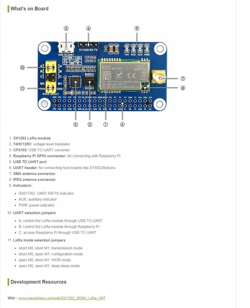 Waveshare SX1262 LoRa HAT for Raspberry Pi Spread Spectrum Modulation 868MHz Frequency Band Auto Multi-level Repeating Supports Wireless Parameter Configuration and Fixed-point Transmission