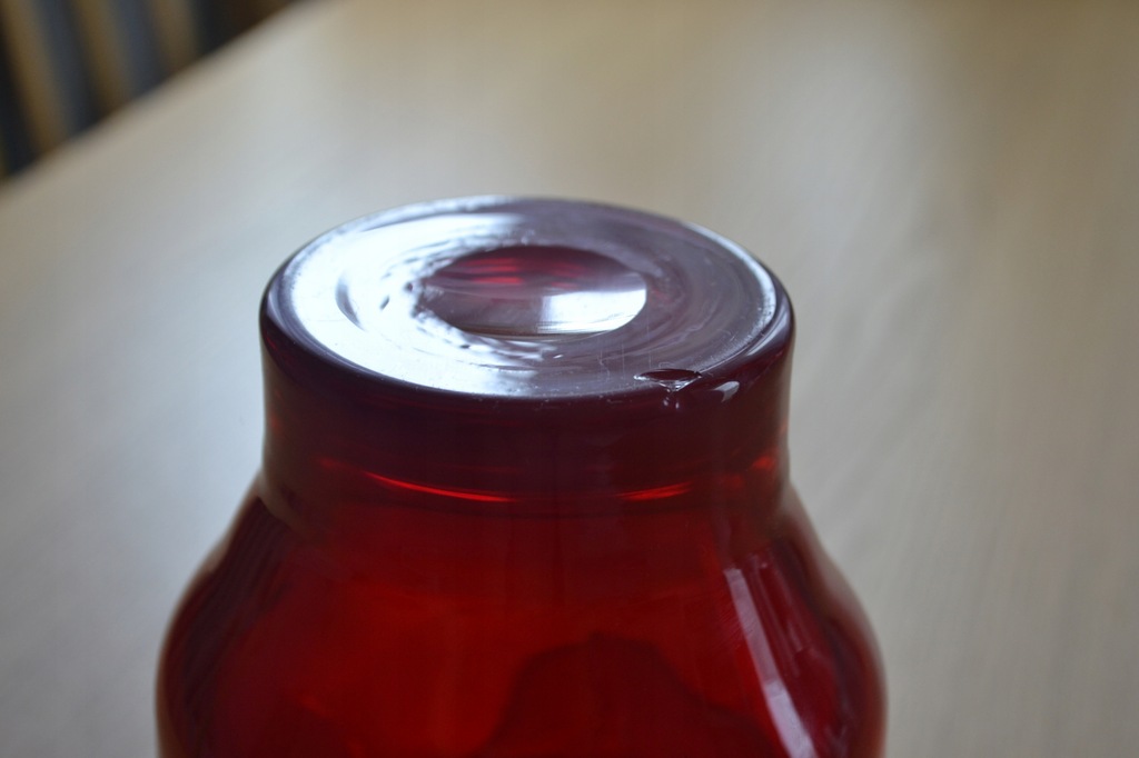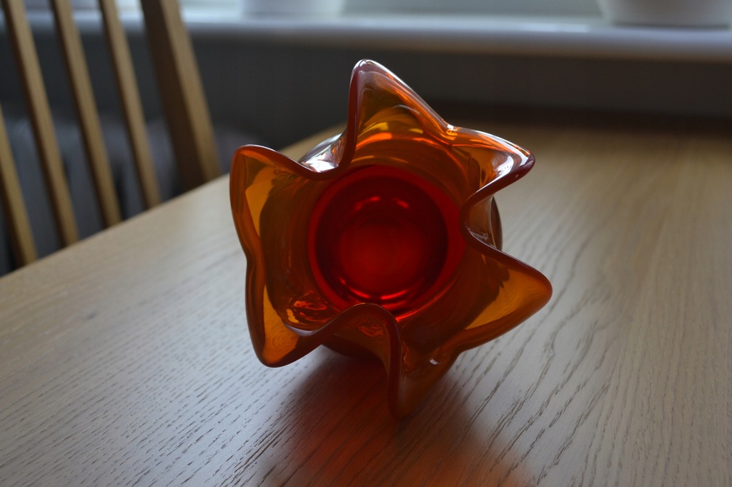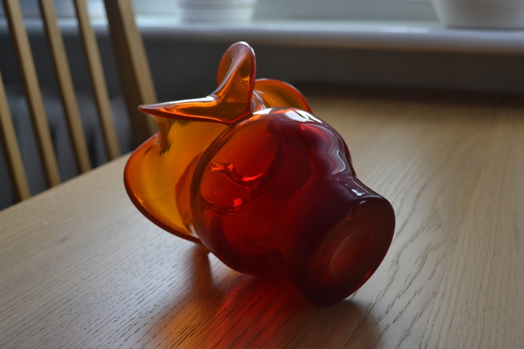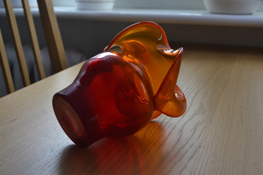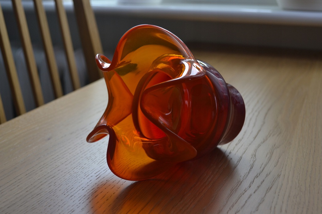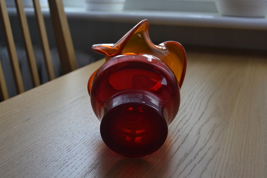 Wazon o CZERWONO = POMARAŃCZOWEJ barwie szkła.