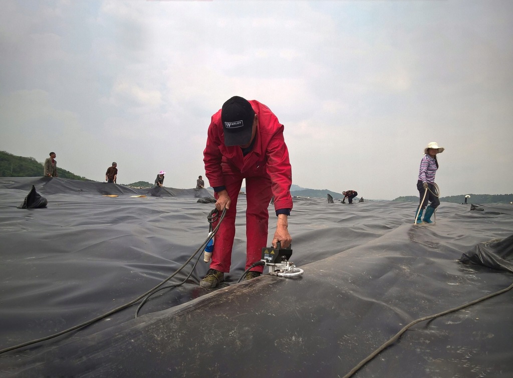 Zgrzewarka wykonuje zgrzewy z kanałem kontrolnym, wystarczające dla większości aplikacji: pod oczka wodne, zbiorniki wody, uszczelnienia nasypów etc.