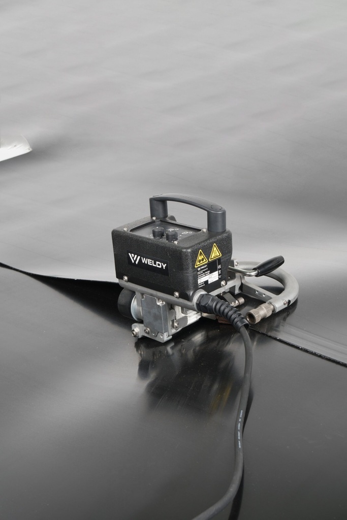 Weldy Miniwelder GEO2 to nowatorska, ultralekka zgrzewarka samojezdna do folii i membran. MINIWELDER GEO2 umożliwia skuteczne zgrzewanie geomembran o grubości od 0,5 do 1,2 mm (HDPE 0,4-1,2 mm; LD-PE, PCV, TPO 0,7-1,5 mm).