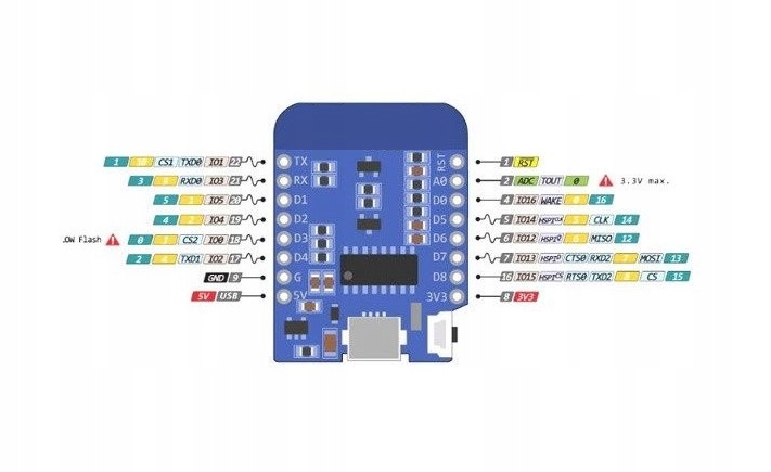 Układ można programować w środowisku Arduino IDE lub w języku LUA - NodeMCU.