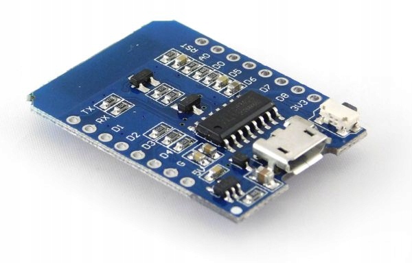 Przedmiotem sprzedaży jest miniaturowy moduł Wemos D1 mini z układem ESP8266-12F i obsługą WIFI w standardzie 802.11b/g/n. Transmisja danych poprzez port USB odbywa się za pośrednictwem układu CH340. Do połączenia z komputerem wymagany jest popularny przewód z końcówką micro USB.