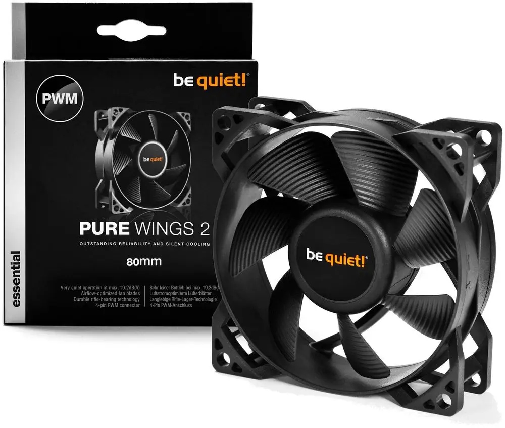 Model Pure Wings 2 80mm PWM, łączy w sobie wszystkie wymienione wyżej cechy. Zapewnia to maksymalny przepływ powietrza oraz cichą pracę na poziomie 19.2dB(A). Zwiększone ciśnienie powietrza sprawia, że wentylator ten jest szczególnie rekomendowany do wykorzystania przy chłodzeniu wodnym oraz zestawach chłodzenia powietrzem.