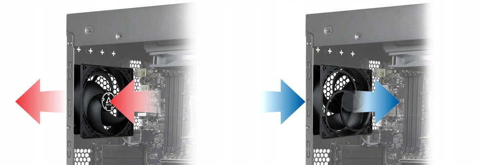Chłodzenie P12 PST jest przystosowane do 2 sposobów montażu w którym albo wpuszcza zimne powietrze do środka albo wyrzuca gorące na zewnątrz