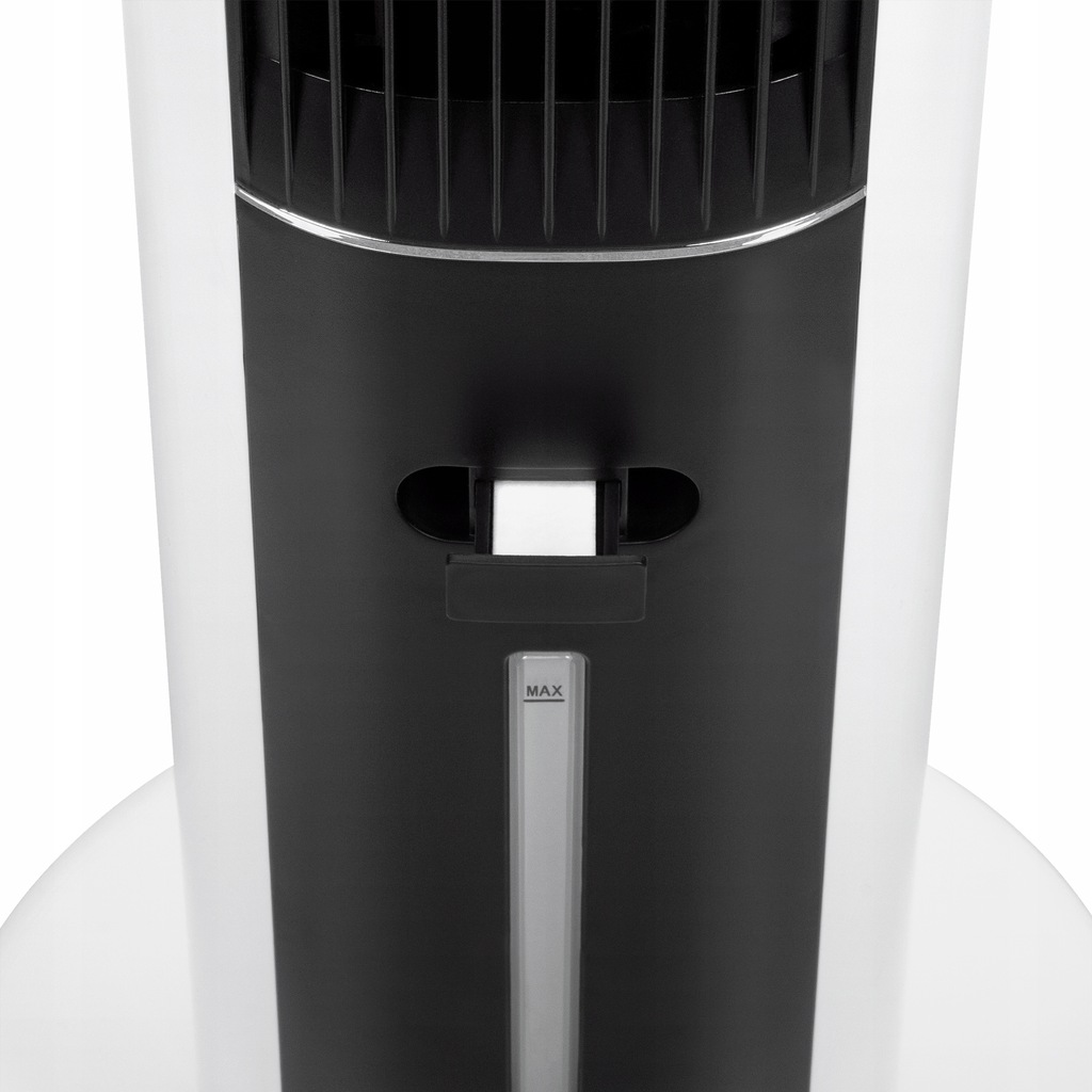 - Chłodzenie wodne: dzięki specjalnemu zbiornikowi na wodę, wentylator skutecznie obniża temperaturę powietrza w pomieszczeniu
