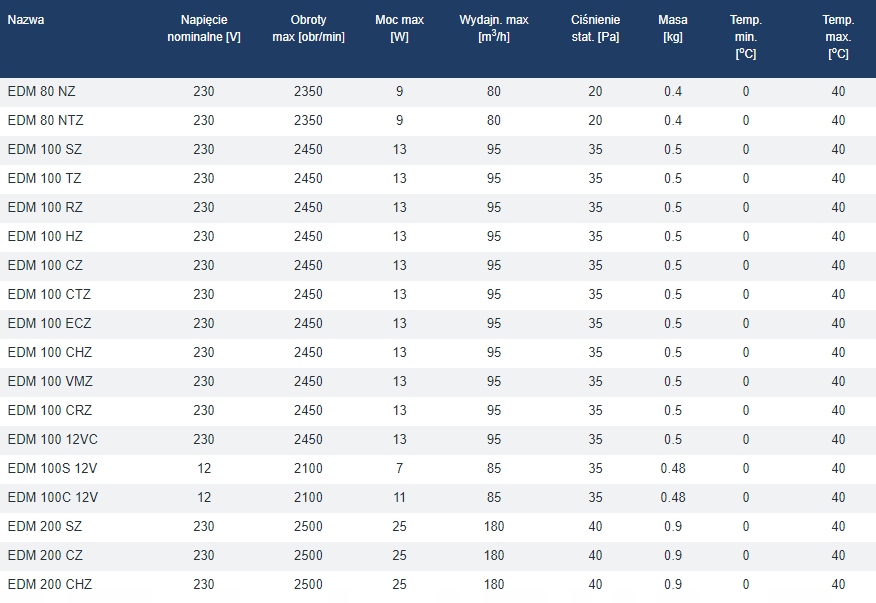 Wentylatory EDM przeznaczone są do wentylacji pomieszczeń małej i średniej wielkości, w szczególności:
