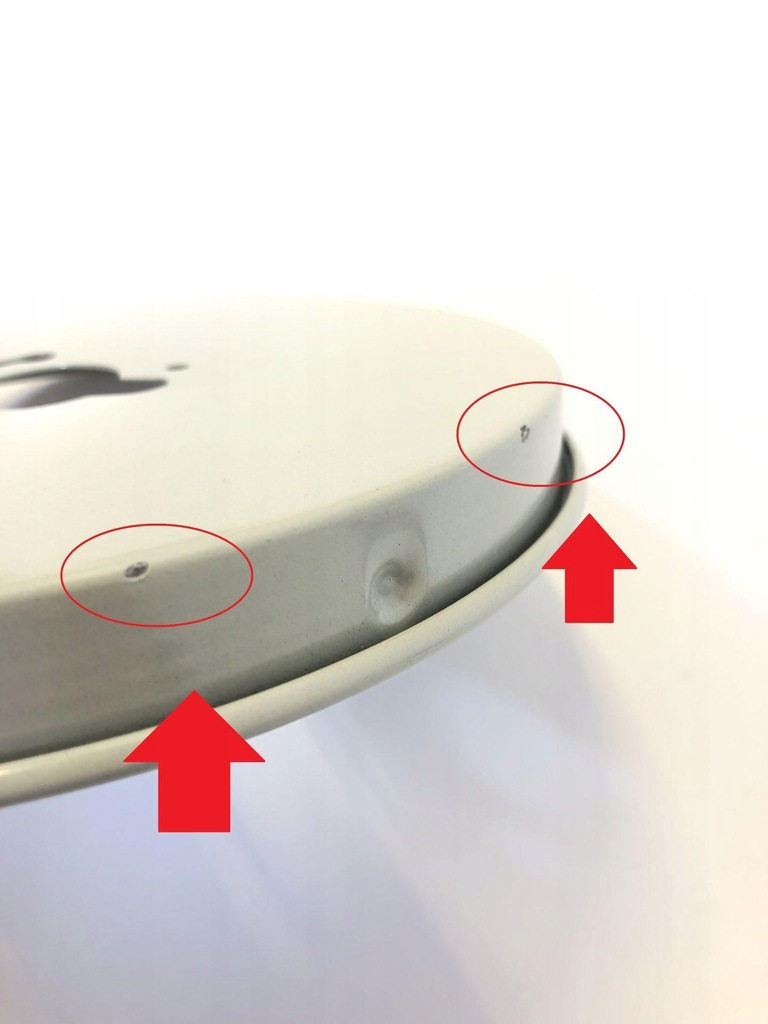 Wada w postaci odpryśnięć - oznaczonych na zdjęciach oraz zarysowań - oznaczone na zdjęciu. Instrukcja w języku polskim. Posiada certyfikat CE.