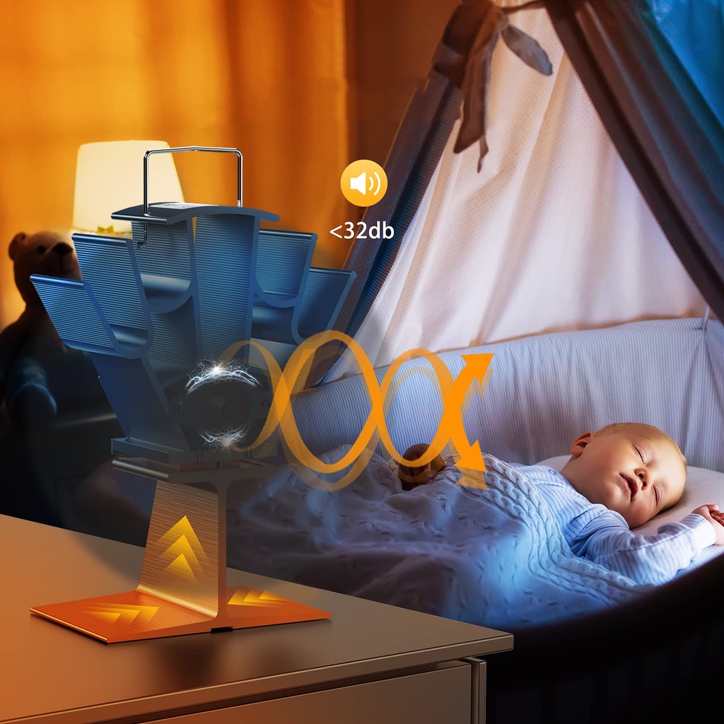 🔥【Bardzo cichy】Jedyne ruchome części zasilanego ciepłem wentylatora pieca na drewno to 4 ostrza, hałas jest mniejszy niż 25 dB, więc jest tak cichy, że nie zauważysz, kiedy pracuje, ale poczujesz ciepło! Pożegnaj się z okropnym hałasem, ciesząc się gorącym powietrzem.
