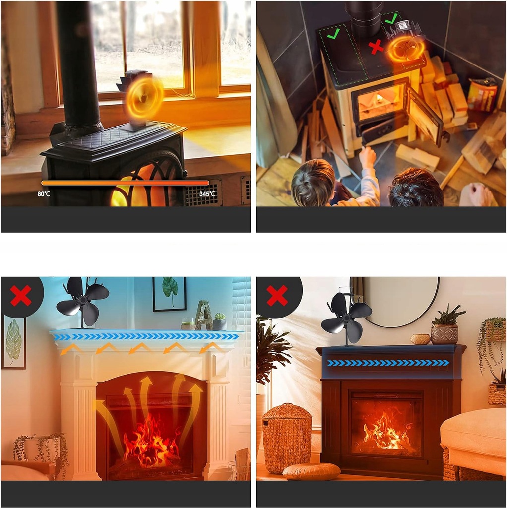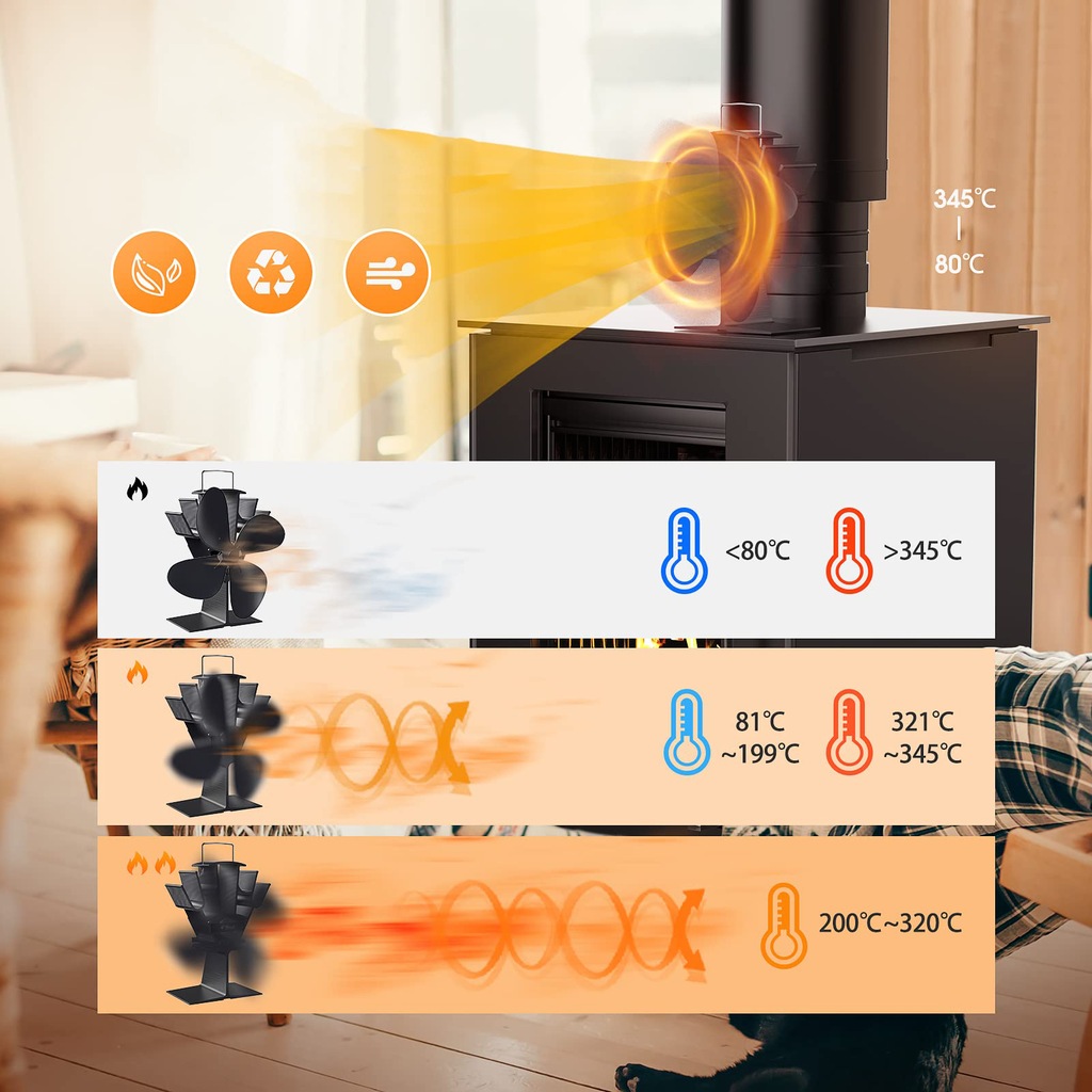 🔥 【Efektywna dystrybucja ciepła】 Ulepszony wentylator pieca, jego prędkość i objętość powietrza zostały znacznie ulepszone. Nasz wentylator kominkowy wykonany z wysokiej jakości anodyzowanego aluminium ma lepszą przewodność cieplną i nie odkształca się ani nie rdzewieje nawet pod wpływem wysokiej temperatury przez długi czas, jest idealnym towarzyszem każdego domu z kominkiem.