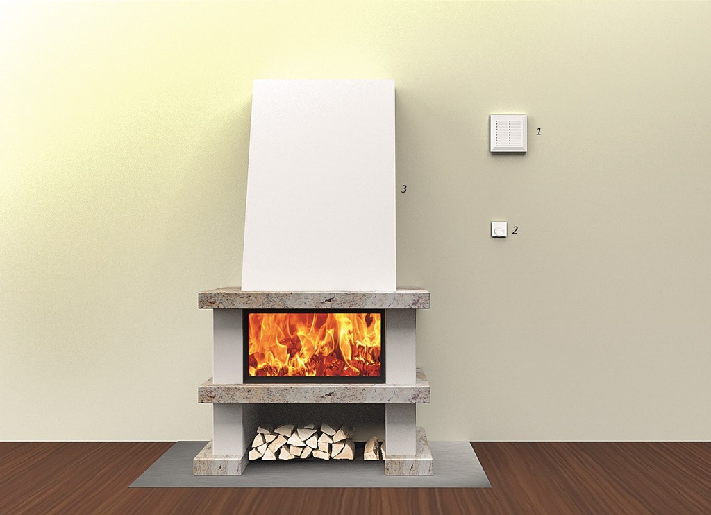 (takie jak kominek [zamknięty] lub piecyk na drewno) do pomieszczenia sąsiedniego, takiego jak salon, jadalnia, sypialnia, gabinet czy korytarz.