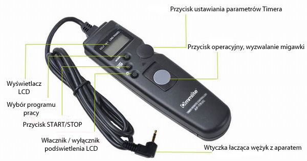 Elektroniczny wężyk spustowy firmy COMMLITE to profesjonalne narzędzie do sterowania aparatem. Urządzenie pozwala na korzystanie z wielu trybów pracy czasowej m.in: ustawienie czasu ekspozycji, opóźnienie migawki, samoczynne wyzwalanie migawki w określonych odstępach czasowych (interwał), ustawianie ilości wyzwalanych zdjęć. Poszczególne tryby mogą być stosowane równocześnie, mogą być łączone.